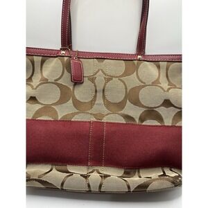 Vintage Coach Burgundy Monogram Tote Purse Brown And Red