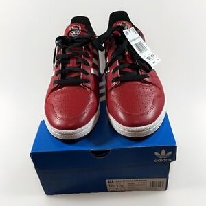 The Adidas Originals Centennial RM NCAA NC State University Wolfpack Men's sneakers in red, size 10.5, are a stylish and patriotic choice for athletic enthusiasts. Featuring the iconic adidas brand and specific design elements inspired by NC State University, these sneakers are perfect for fans and supporters of the team. With a lace-up closure and comfortable fit, these athletic shoes are a great addition to any sneaker collection, representing a unique blend of sporty style and team pride.