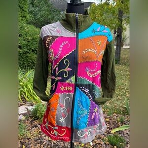 Colorful Embroidered Patchwork boho hippie Women's Jacket L XL