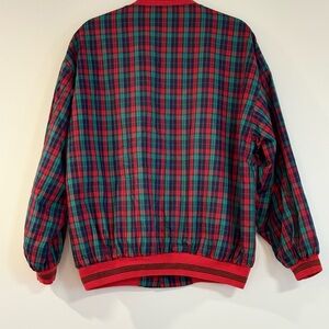 Add a pop of color to your wardrobe with this vibrant plaid jacket. Featuring striking red accents, it's perfect for casual outings. Stay stylish and comfortable.