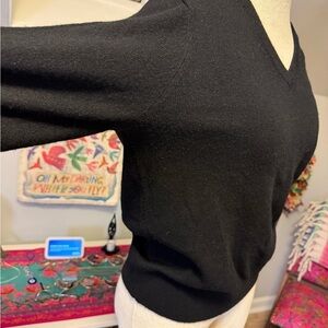 Elegant black cashmere sweater with a timeless V-neck. Ideal for versatile styling.