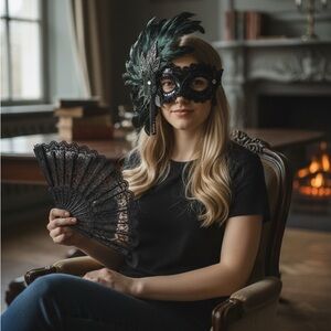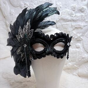Art Deco Handmade Masquerade Mask | Gypsy Renaissance | Alexis Seepo | Emerald Black Feather Couture Wearable Art.