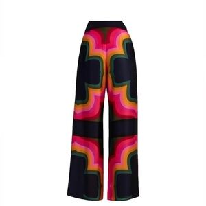 Trina Turk’s Hansa pants feature a vibrant optical print and a flattering wide-leg silhouette.