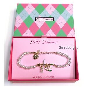 NWT Betsey Johnson 💋GOLF FRONTAL Gold Tone Glass Crystals/ Faux Pearl Bracelet