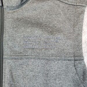 The North Face Ridgeline SS Vest is engineered with WindWall technology to provide a highly breathable yet wind-resistant layer for outdoor activities. This dark grey heather softshell features a durable water-repellent finish and a standard fit for comfortable movement. Designed with a full-zip front, secure-zip hand pockets, and a stand-up collar, it offers practical utility for hiking or casual wear. The chest includes a professional embroidery for Hawaii Pacific Health, adding a unique corporate touch to this high-performance garment.