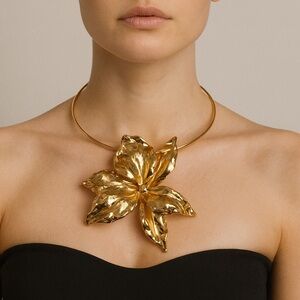 Elegant gold floral necklace perfect for any occasion. Adds a touch of sophistication to your outfit.