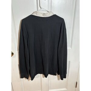 This Vintage Polo Ralph Lauren Rugby Men's Shirt in size XL is a timeless classic that exudes style and sophistication. Made by the renowned brand Ralph Lauren, this shirt features a classic black color and long sleeves, perfect for a rugby performance or a casual day out. Its vintage design adds a touch of nostalgia and charm, making it a versatile piece for any man's wardrobe.