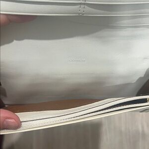 Chic Coach wallet with white and brown design. Features signature pattern. Ideal for stylish outings. In great condition!