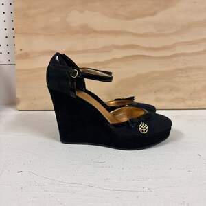 Coach Black Signature Canvas Wedge Sandals, Women's Size 6.5 — Elegant and versatile.