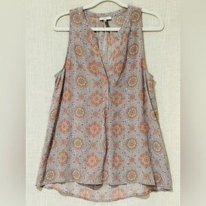 Joie Sleeveless Blouse with Orange/Peach and Gray Pattern