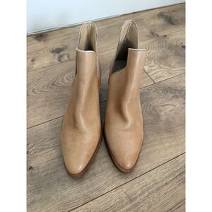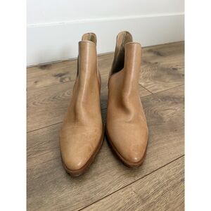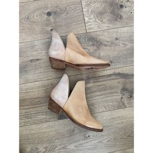 FREE PEOPLE 37 womens Charm Double V Ankle Boots Leather tan Pointed toe bootie boot