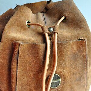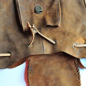 Patricia Nash Casape Burnished Cognac Suede Drawstring Backpack Boho Western L