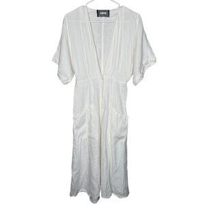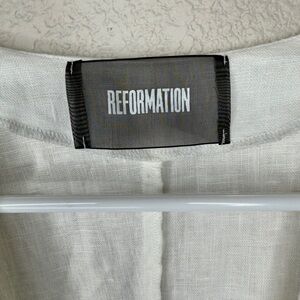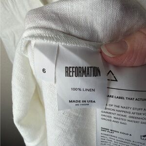 Reformation Geneva Dress in White 100% Linen Women’s Size 6 Deep Neck *NO BELT*