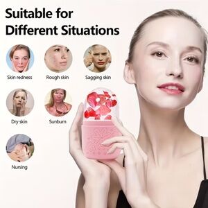 Enhance your skincare routine with this dark pink facial roller and ice globe set. Perfect for soothing and revitalizing your skin.