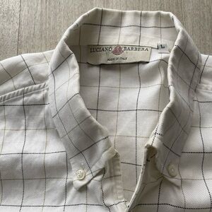 Luciano Barbera Men’s Large Button Down Shirt Made In Italy White Windowpane
