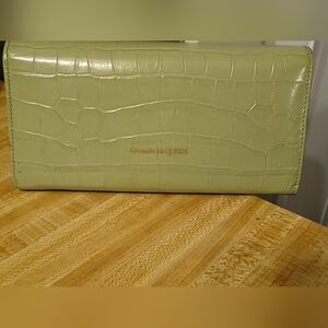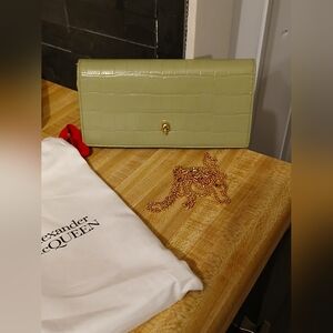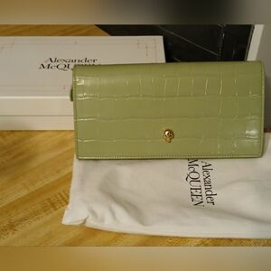 Alexander McQueen NIB Full Inclusion Mint Green Croc WOC. absolutely stunning. such high quality. the chain comes with it and can be removed so that this can just be used as an actual wallet. includes dustbag and box