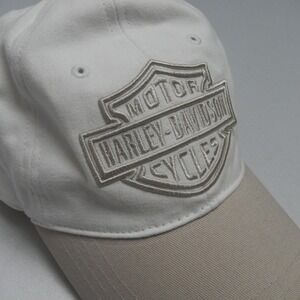 Harley Davidson Baseball Cap White Tan Logo Embroidered Adjustable Strap