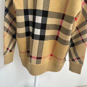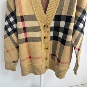 In celebration of the evolution of timeless prints and traditional house codes, Burberry's SS22 collection explores the Vintage Check print. First introduced in the '20s, the signature patterns reign has been as iconic as the brand themselves. Sticking to traditions, this jacquard-knitted cardigan is highlighted by the recognisable print and a soft merino wool construction.