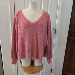 Free People Pink V-Neck Women's Sweater