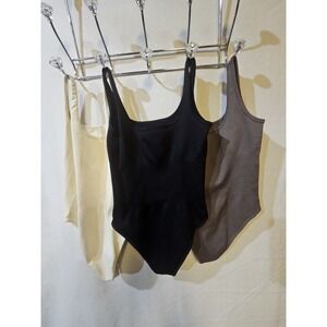 OQQ lot Of 3 Yoga Bodysuits, Cream, Brown And Black Size Small