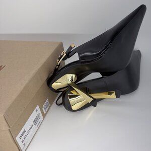 Steve Madden Divine Heels Black Gold Leather Pointy Toe Pumps Size 7