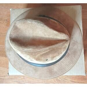 London Fog Men's M Fedora Rain Hat in British Tan Genuine Leather Size 7-7 1/8