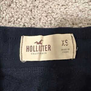 Sleek navy shorts with drawstring. Perfect for workouts or casual wear. Features Hollister logo.