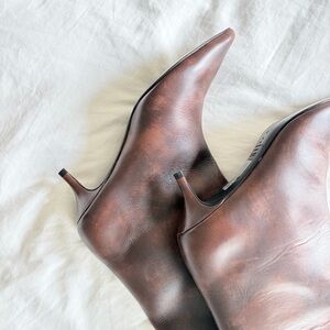 Schutz Maryana Lo brown leather knee high boots with kitten heels.