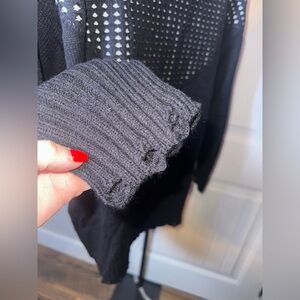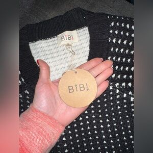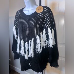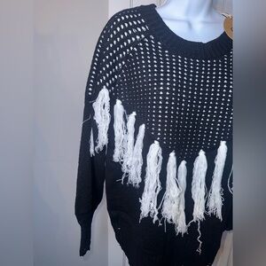 NWT BIBI Size Medium Black and White Fringe Distressed Sweater