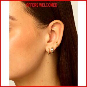 14K Gold Plated 925 Sterling Silver Hoop Earrings Set for Women