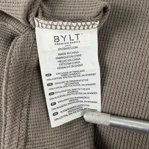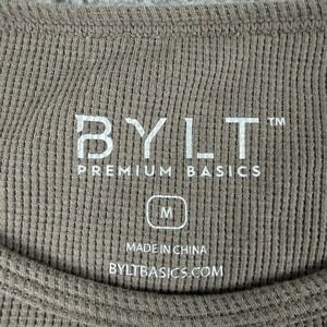 BYLT Premium Basics Shirt Mens M Brown Long Sleeve Crewneck Curved Hem Waffle Knit
