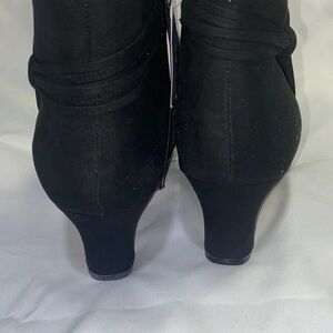 Chic black ankle booties with a sleek design. Perfect for versatile styling.