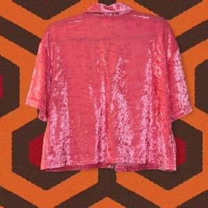 • Vintage 80s 90s oversized relaxed fit funky retro hot pink velour type crop top button-up shirt blouse