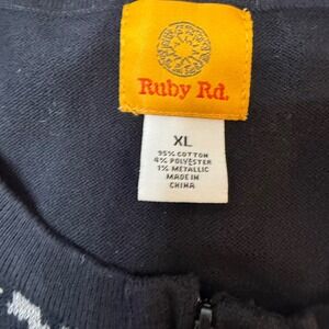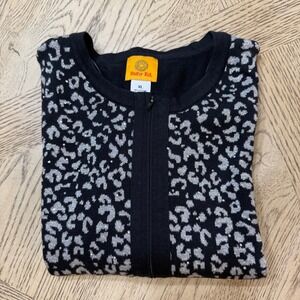 Ruby Rd Women's XL Black Animal Print Zip Front Embellished Cardigan Sweater