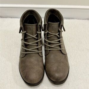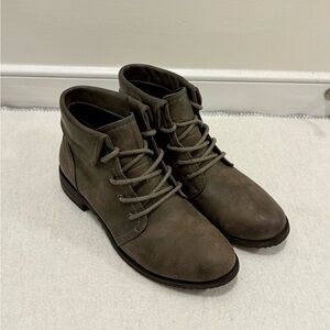 Cliffs lace-up boots in a grayish taupe color with 1-inch heel. Comfortable and ideal for everyday style.