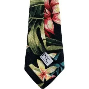 POCKET SQUARE CLOTHING PSC The Kaleo Black Tropical Slim Tie Floral Linen Beachy