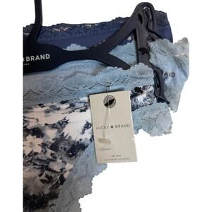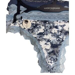 Lucky Brand Womens Thong Panty Underwear Lace Blue Flower Panties New