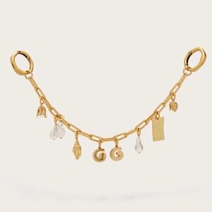 A golden bag chain adorned with a variety of whimsical seasonal and iconic CG charms.