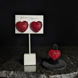 Betsey Johnson red heart earrings and a matching custom ring (ring not betsey johnson) #glamour #party #heart