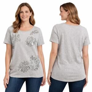 EUC Chico’s Sequin Floral Short Sleeve Tee – Size 2 (12/L)