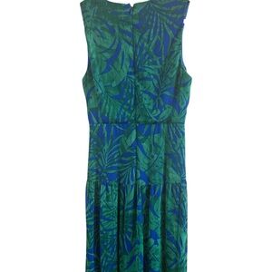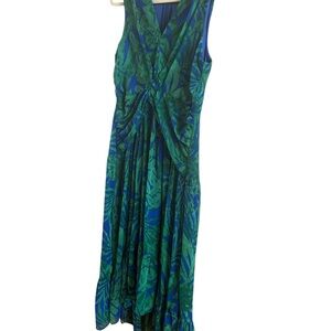 DKNY Women’s Fit & Flare Twisted Front Midi Dress Size 10 V Neck Blue Green