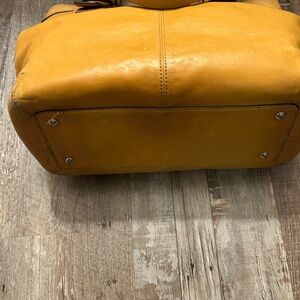 Elegant mustard leather shoulder bag with sturdy straps. Ideal for daily use.