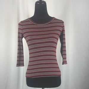 M. Fasis 3/4 Sleeve Stripped Crew Neck Top