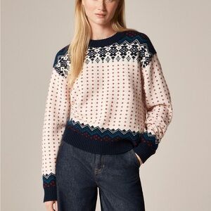 Knit from a cozy, midweight wool blend in a classic mix of navy, cream and red, it feels equal parts heritage-inspired and holiday-ready. Pair it with everything from broken-in denim to crisp trousers—it's the kind of wardrobe staple that never feels overdone.