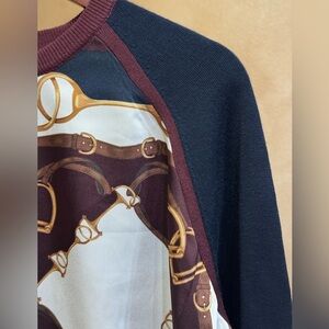 This crewneck sweater is constructed with a combination of silky twill at the front and soft cotton-blend fabric at the sleeves and back body.