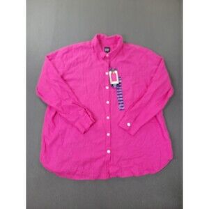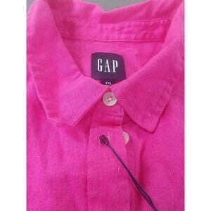 GAP Shirt Womens 2XL Pink Very Berry Linen Button Down Top Long Sleeve Plus NEW