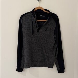 Stay stylish and comfortable with this men's gray and black sweater. Perfect for any casual occasion.