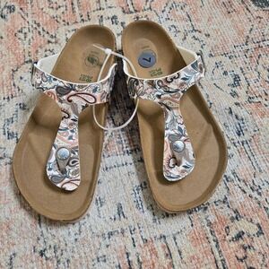 Birkenstock Gizeh Sandals Women 7 EU 38 Paisley Antique White NWOB Vegan Thong