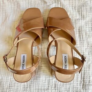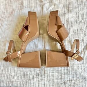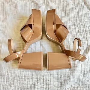 Steve Madden | NWOT Tan Nude Patent Leather Platform Ankle Strap Whimsical Heels
