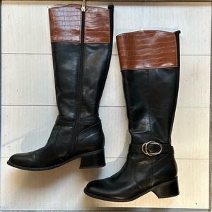 Marc Fisher Hailin Boots 6.5M Womens Leather Tall Shaft Black Brown EUC